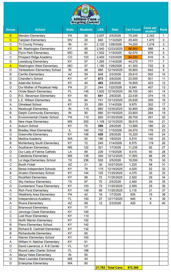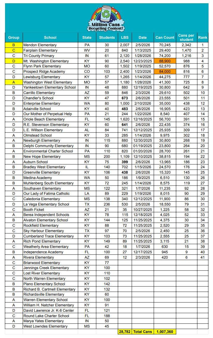 37 of our 54 amazing schools have had their cans picked up so far — many bins are still filling up! 🗑️♻️